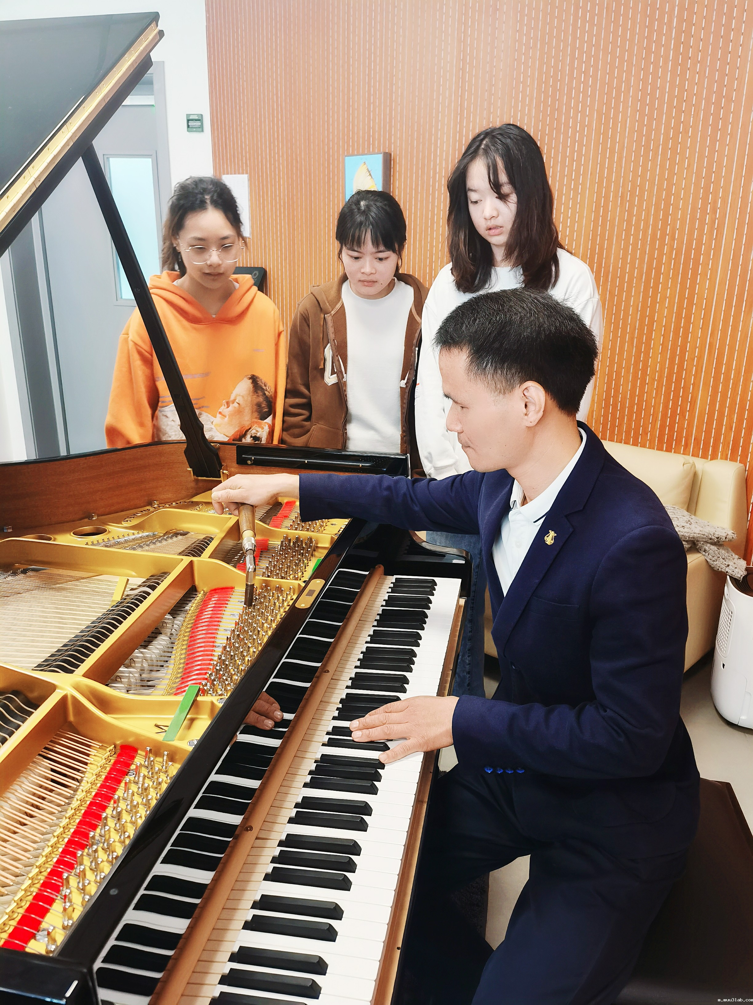 本次期末考试,钢琴教授袁芳根据每位学生各自的特点为她们选用了一首巴赫的作品和一首风格都然不同的钢琴奏鸣曲选段作为考试曲目进行备考。备考期间,袁芳老师还专程邀请了施坦威钢琴深圳首席调律师黄义军先生为学生们举办关于钢琴调律的讲座。黄义军先生为学生们现场解析了如何为钢琴调律,强调了调律在演奏与练习中的重要性。一个半小时的讲座,学生们听得津津有味,对钢琴这件庞大乐器的发声原理也有了更深层的了解。