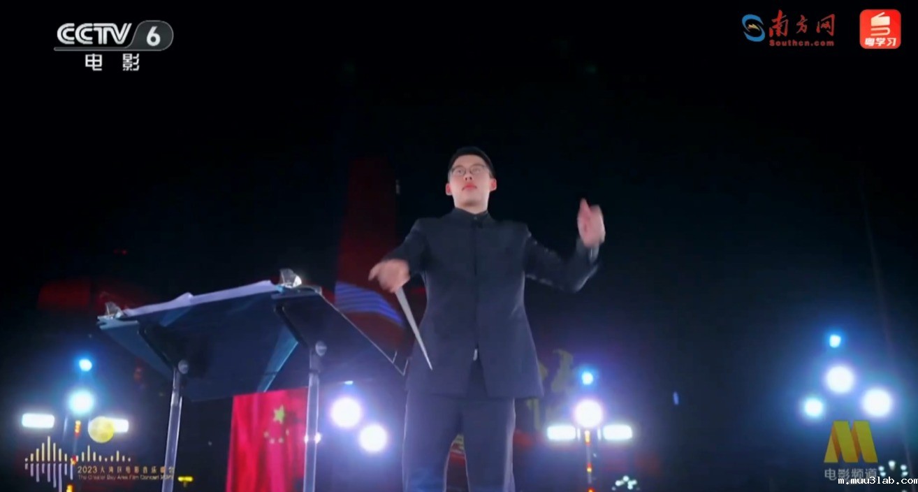 6月29日晚,“湾区升明月”2023大湾区电影音乐晚会在中央广播电视总台、CCTV6电影频道、凤凰卫视中文台等平台播出。在晚会尾声,香港管弦乐团、澳门乐团、广州交响乐团、深圳交响乐团“云”联奏《东方之珠》《我爱你,中国》,我院2022级音乐表演专业指挥方向研究生方钟灵担任本场节目中深圳交响乐团的指挥一职。
