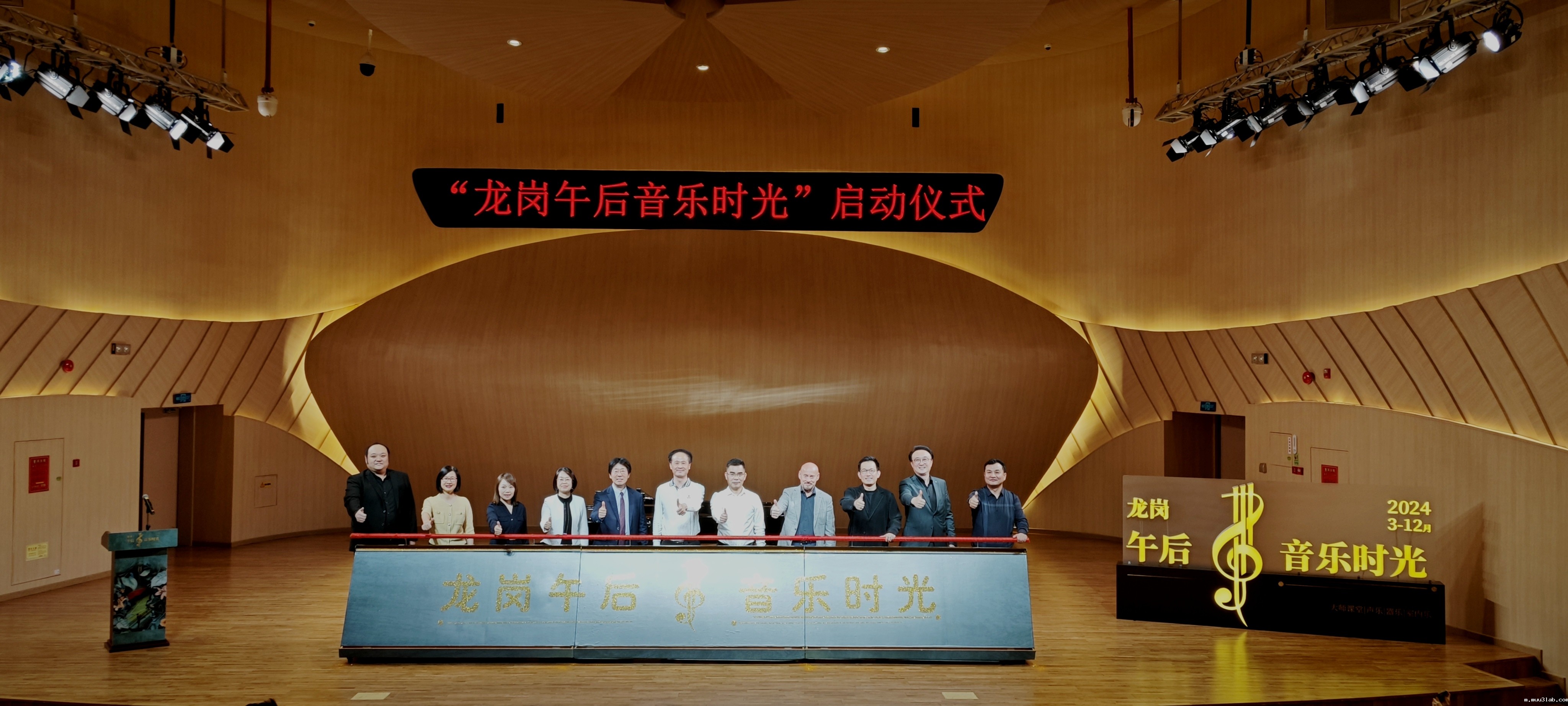 启动仪式(从左至右:龙岗区公共文化服务和产业促进中心(场馆服务部)部长杜安智、龙岗区公共文化服务和产业促进中心副主任肖新霞、深圳市龙岗区文化广电旅游体育局副局长郭奇瑶、中共深圳市龙岗区委宣传部二级调研员刘斌、betway在线登录副院长金平、中共深圳市龙岗区委宣传部区文联主席林楠、深圳市龙岗区文化广电旅游体育局党委委员姚本道、betway在线登录教师保罗·科尼、betway在线登录歌剧与声乐学部主任石倚洁、betway在线登录教授刘嵩虎、龙岗区文化馆馆长夏士康)