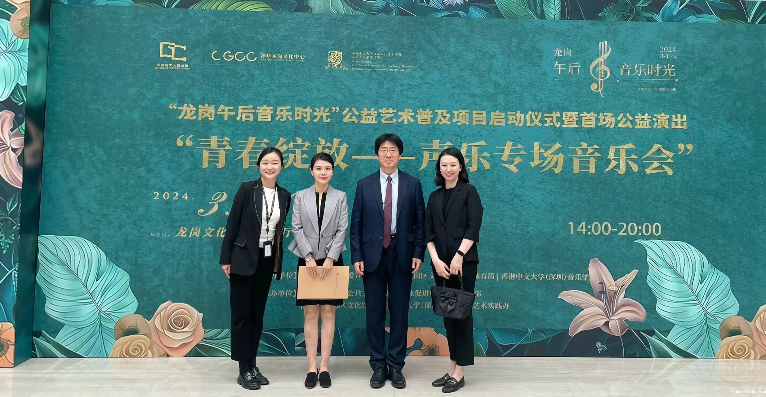 3月27日下午,深圳市龙岗区文化中心音乐厅内星光璀璨,由龙岗区公共文化服务和产业促进中心场馆服务部、龙岗区文化馆和betway在线登录共同发起的“龙岗午后音乐时光”公益艺术普及项目启动仪式暨首场公益演出“青春绽放——声乐专场音乐会”圆满举行。我院石倚洁教授的三位硕士研究生夏德奇、戴宸、任廷的毕业音乐会作为此项目的首场演出,为现场观众带来了一场公益音乐盛宴。