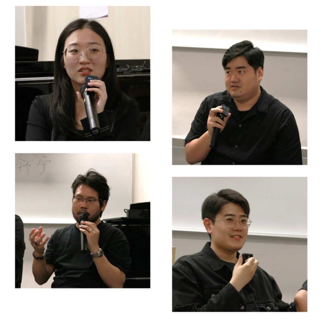 黄若宾借用莎士比亚的“世界是我的牡蛎,我将以利剑开启。”向学弟学妹们作出勉励。四位学长学姐以其丰富的经历和独到的见解,向在场参与者进行了一场独一无二的精彩分享。他们的言谈之间透露着对音乐事业的热爱与坚持,以及对未来的信心与期许。无论是在国内还是在国外,他们都始终坚持着对音乐的热情,并努力成为自己音乐梦想的追求者。相信通过这次分享会,同学们更加坚定了对音乐事业的热爱与追求,努力闯出属于自己的一片天地。