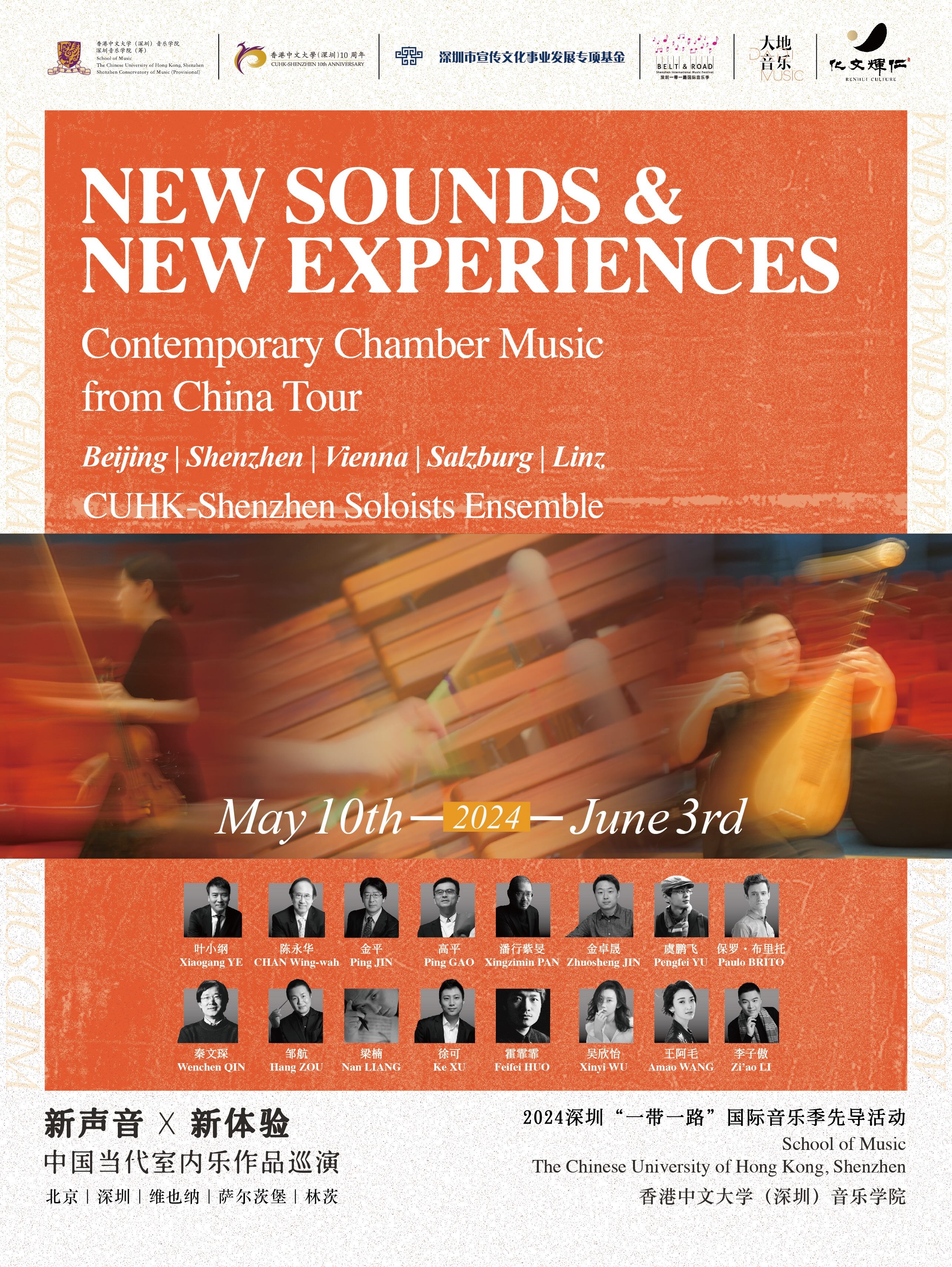 本次活动自5月10日首都北京中央必威首页登录平台演奏厅的演出拉开序幕,系列演出将呈现近年来代表中国新音乐创作的16位作曲家的共21部作品,包括室内乐组合、重奏等多种艺术组合形式,其中8位作曲家来自我院,这些作品集中代表了我院师生顶尖的艺术水准和优异的师资力量,同时极大的丰富了学生的艺术实践活动。作品包括:歌颂诗圣杜甫的作品《秋兴八首-其一》、表达中国传统乐器琵琶的室内乐作品《梨花落》、展现中国佛教艺术文化的作品《莲花微笑》和《醉舞金刚》以及描述中国古代神话传说中的神兽之一凤凰的作品《凤舞》等。音乐会拟上演的作品是近年来中国室内乐创作的最重要成就。活动整体具有出访规格高、领域范围广、文化影响力大、演出阵容豪华超强、艺术品质水平、中国元素突出丰富等诸多特点。活动的成功举办对进一步巩固和扩大香港中文大学(深圳)、betway在线登录的国际学术、艺术影响力,持续打造、进一步提升深圳大都市在粤港澳大湾区乃至国际上的城市形象与文化地位有重大意义。