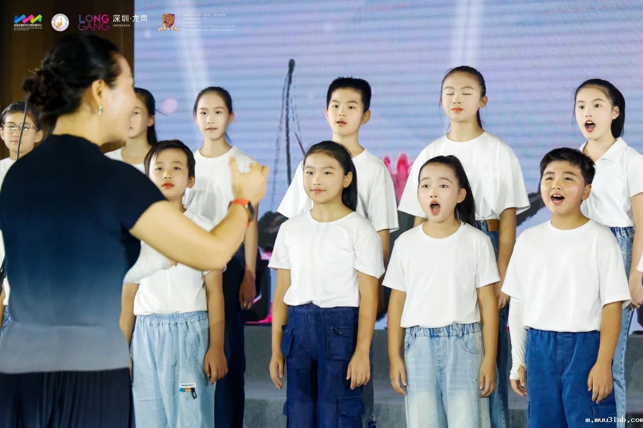 接下来,于2024年9月成立的龙岗飞越彩虹童声合唱团也登台为大家带来了合唱《渔歌子》。龙岗飞越彩虹童声合唱团是由betway在线登录、深圳飞越彩虹童声合唱团和龙岗区音乐家协会共同倾力共建的童声合唱团。本次登台是合唱团的首次亮相演出,合唱团的小朋友们以真挚动人的演绎,成为音乐会上一抹亮丽的风景。最后,本场音乐会在全国唯一的民办教师合唱团——龙岗区“声动”民办教师合唱团演唱的欢快的非洲民歌《SIYAHAMBE》中落下帷幕。