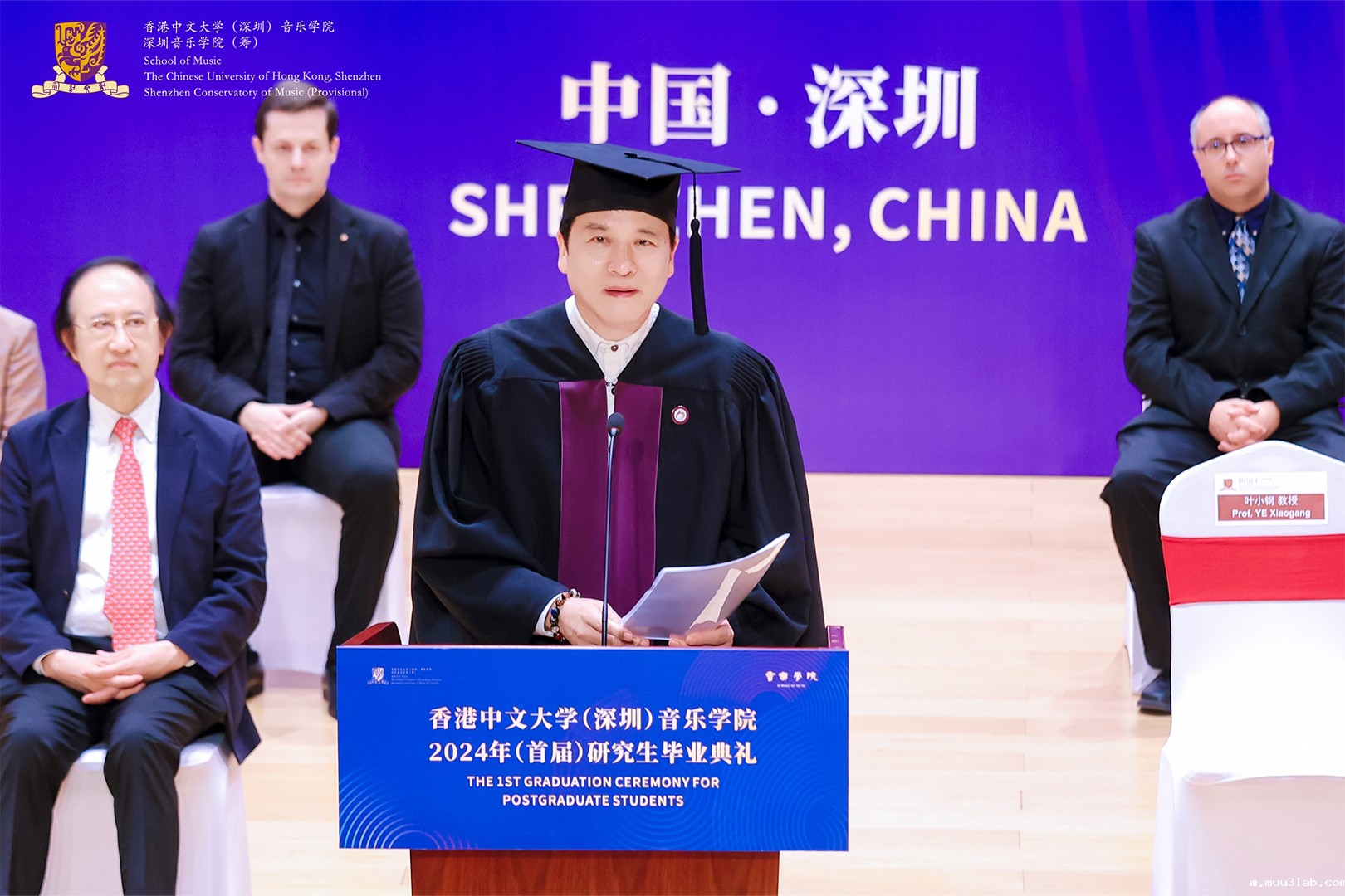 叶院长介绍,2024年是学院继续国际化、专业化纵深发展的关键之年,尤其在办学层次方面,2024年4月30日,经教育部国际合作与交流司的批复同意,学院新增作曲与作曲技术理论音乐博士专业、音乐表演音乐博士专业。在建院不到三年之际,必威首页登录平台就形成了在本硕博艺术培养体系上一体化贯通式的发展,这是中国艺术教育的奇迹,充分体现了深圳市委市政府的正确领导与支持、全社会的厚爱与关心、香港中文大学(深圳)具体指导与协助、学院全体教职工的耕耘与付出。在我国增设博士专业,特别是一级学科的博士专业,对于一个地区的高校在音乐艺术方面建设完整的本硕博人才培养体系极为重要,尤其在建市史只有四十多年,却一日千里发展成为中国气派、中国风范、中国经济特区的排头兵深圳,获取这一教育殊荣更是令人振奋、欢欣鼓舞。更为可喜的是学院今年迎来了首届59名硕士研究生毕业,就业率高达92.75%;同时,学院招收了首届10名博士研究生。