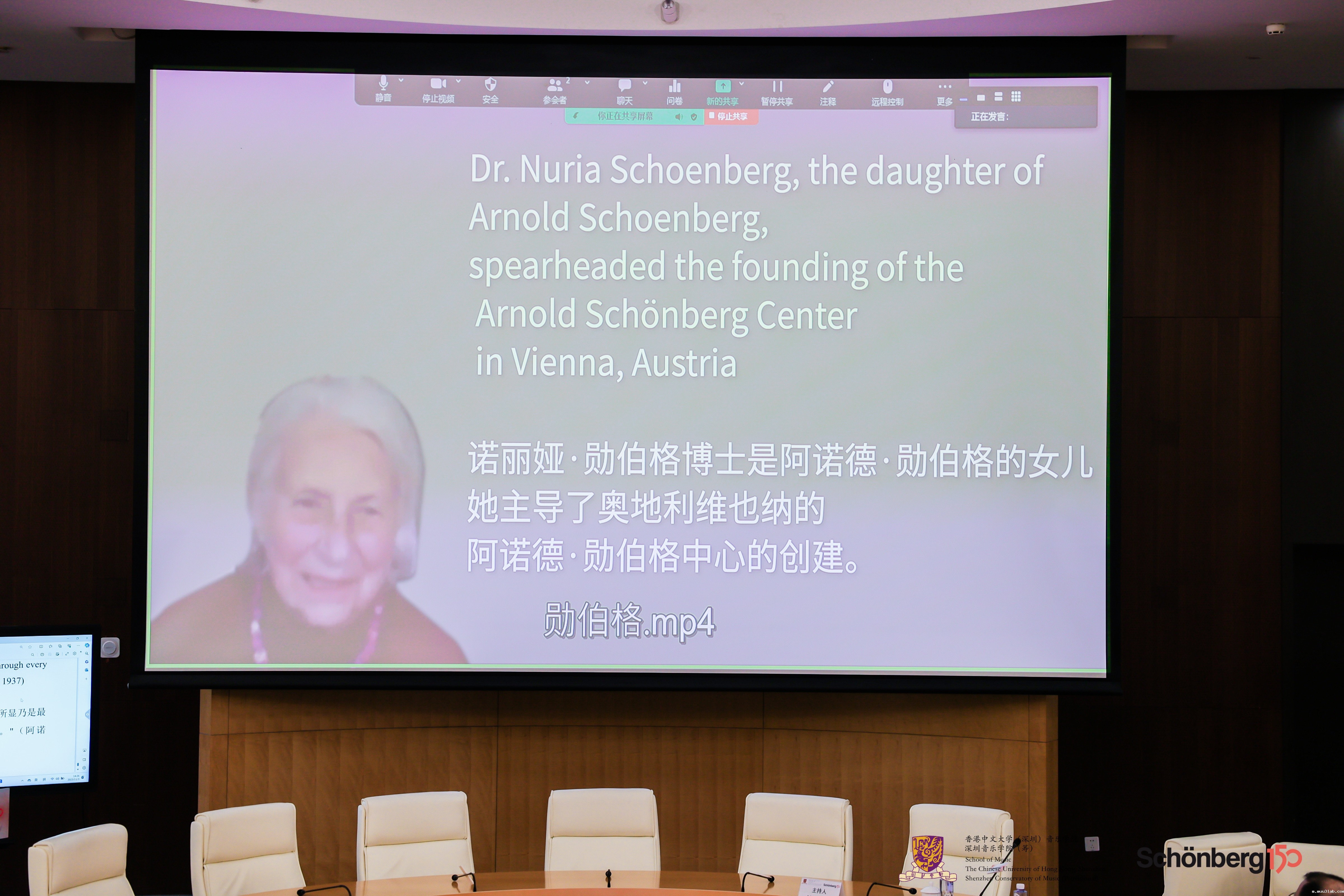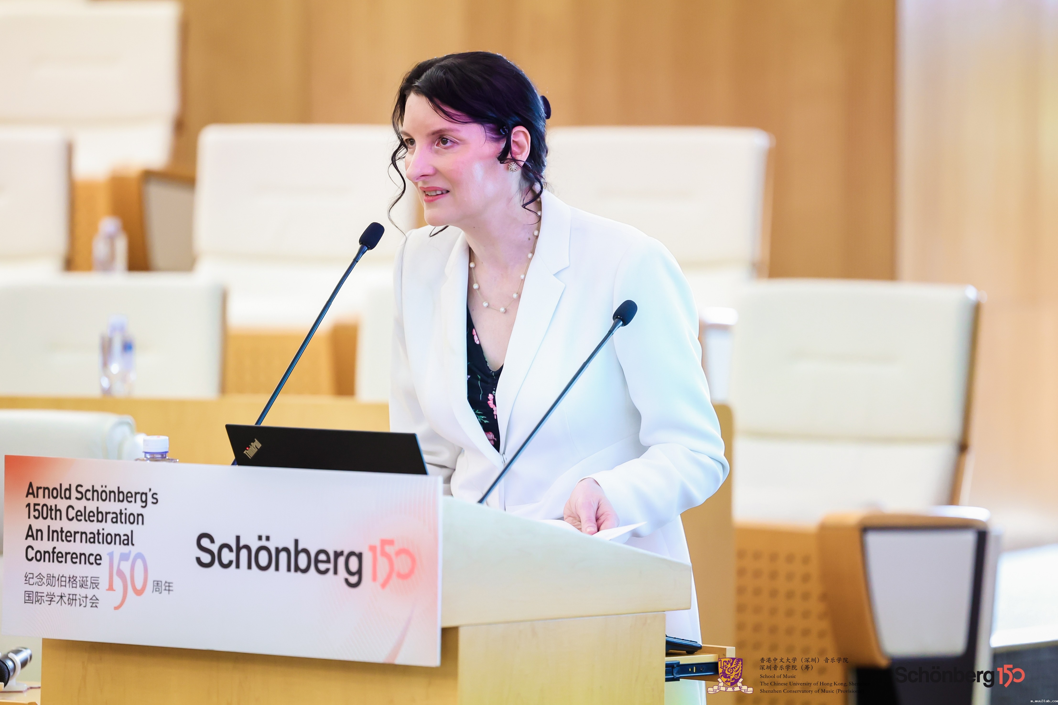 The conference opened with remarks from Xiaogang YE, representing the China Musicians Association and the School of Music, CUHK-Shenzhen. Prof. Xu Mengdong welcomed domestic and international guests on behalf of the Composition and Compositional Theory Society of the China Musicians Association. Dr. Ulrike Anton expressed gratitude for the organization of the conference by the China Musicians Association and the School of Music, CUHK-Shenzhen, and introduced the participants to the Arnold Schoenberg Center in Vienna. Opening remarks and greetings were also delivered via video by Schoenberg's daughter, the widow of modernist composer Luigi Nono, Nuria Schoenberg Nono; Schoenberg's second son, Ronald Schoenberg; and Schoenberg's youngest son and former chairman of the Schoenberg Center Council, Lawrence Schoenberg.