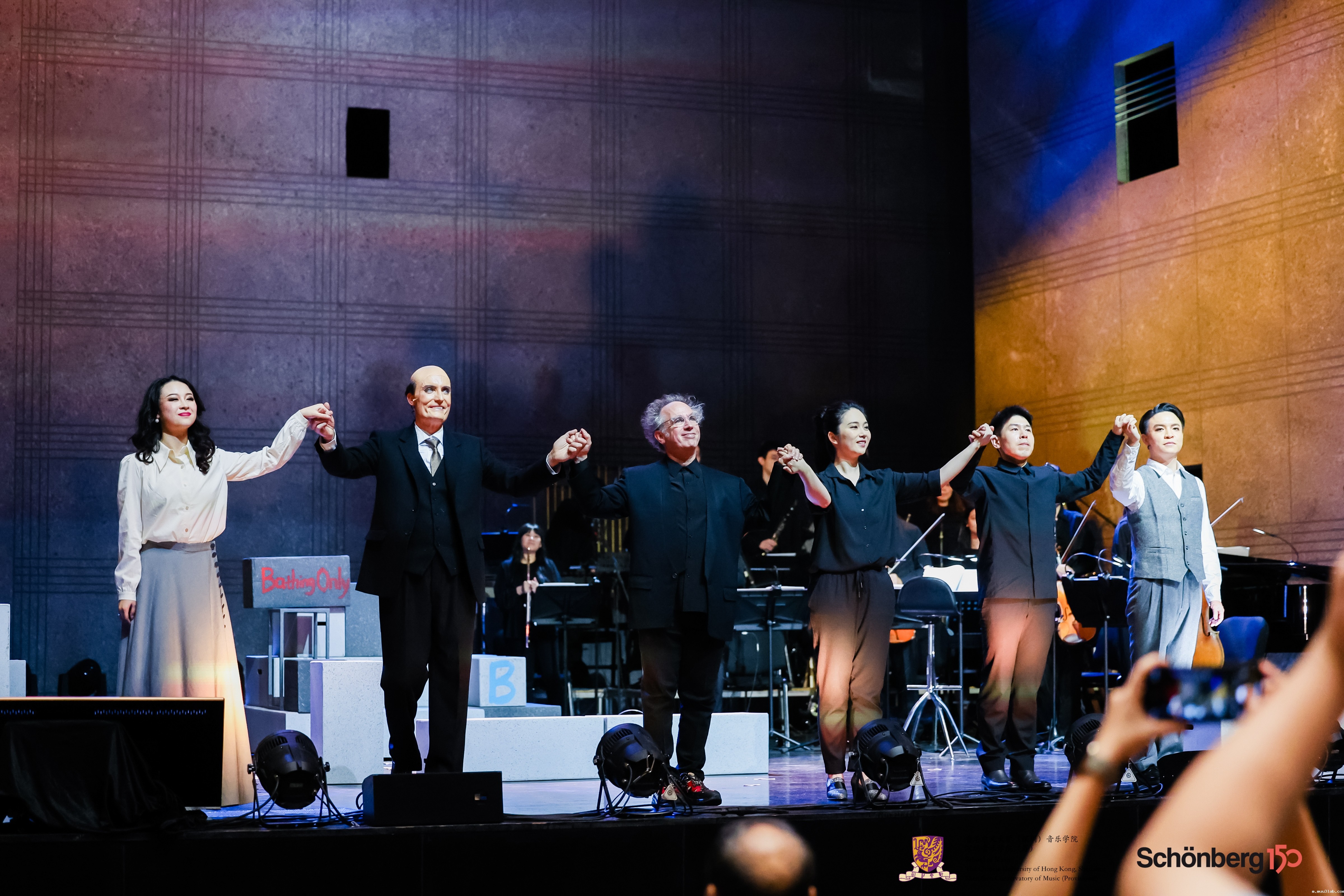 On the evening of November 4th, the opera Schoenberg in Hollywood premiered at the Longgang Cultural Centre Grand Theater in Shenzhen. This was the Asian premiere of the opera, produced and staged by the School of Music, CUHK-Shenzhen. It featured Italian renowned baritone, Marco Di Sapia, along with faculties from the School of Music, CUHK-Shenzhen — tenor LI Biao, soprano Ni ZHOU, and conductor, Prof. Zhuorui DENG.