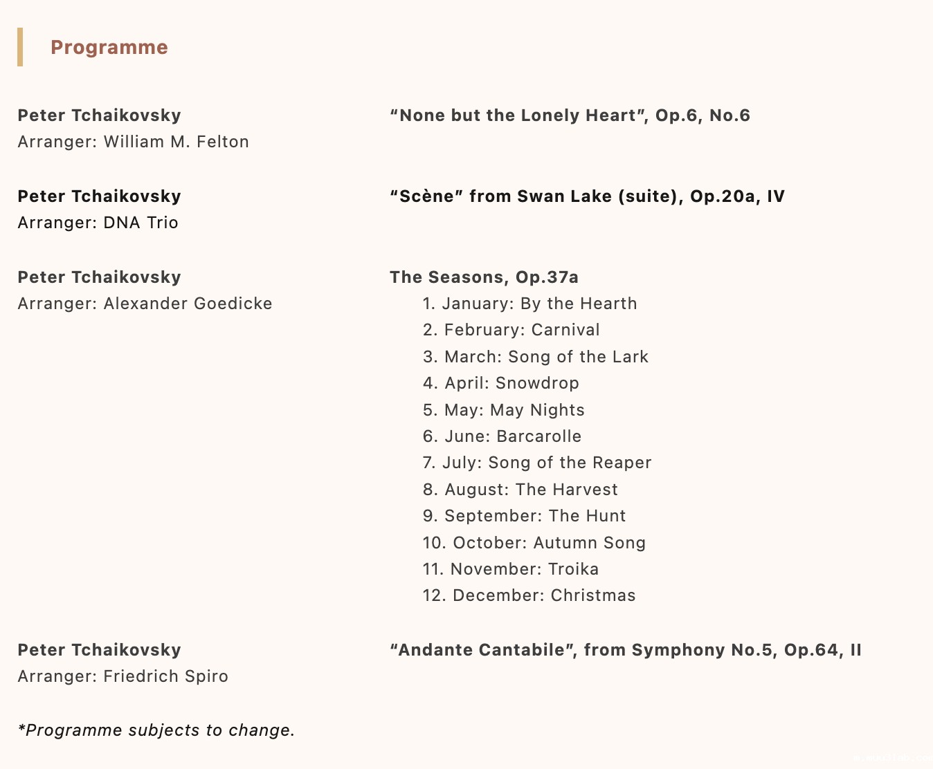 Tchaikovsky's Journey through the Seasons: DNA Trio Music Concert