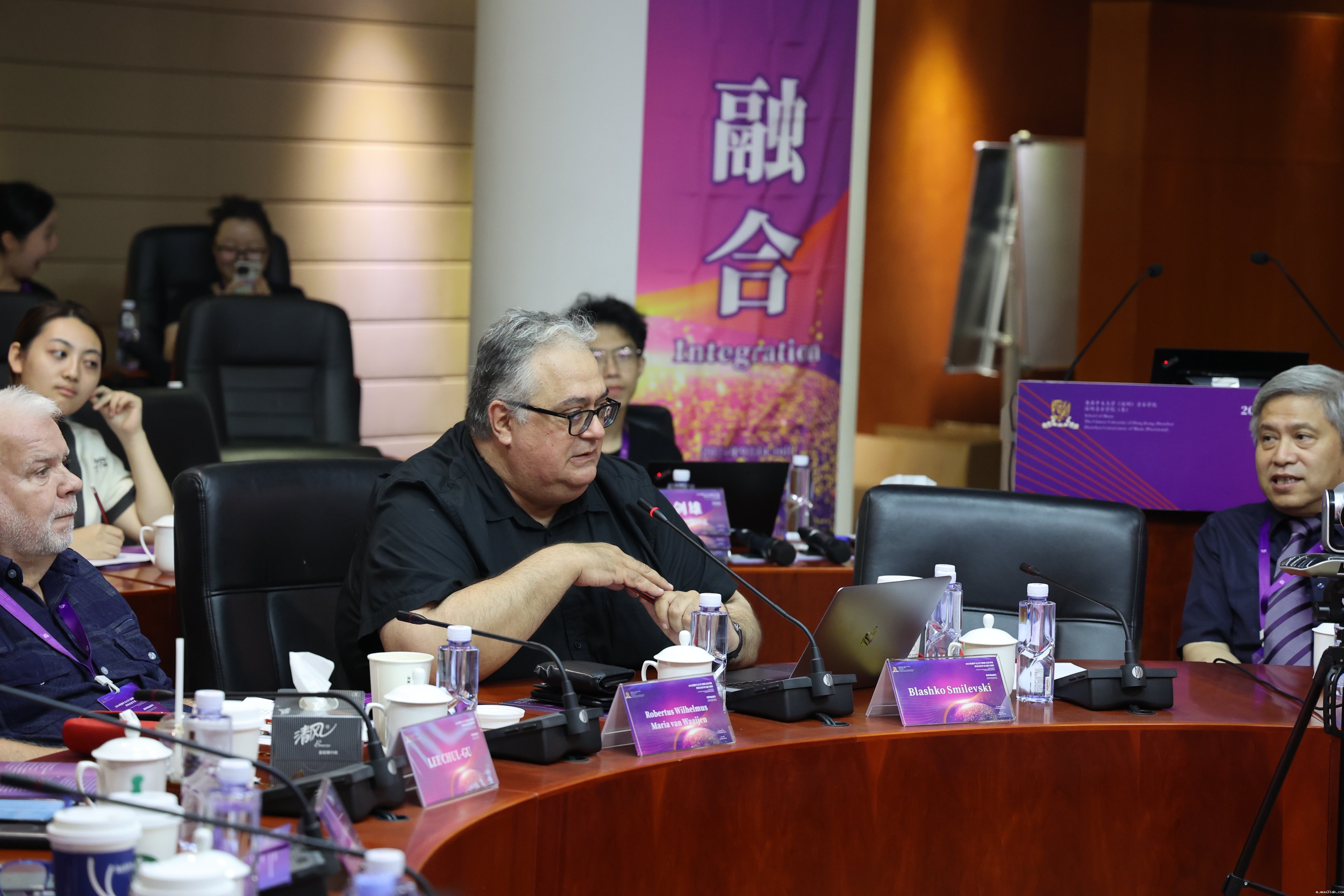 第一场学术研讨会中,国际音乐理事会(IMC)总监David Grosso介绍了IMC在保护传统音乐方面的作用;国际青年音乐联盟总监Blashko Smilevski分享了JMI创办过程中所遇到的挑战以及如何解决问题的经历;荷兰青年音乐联盟主席、名誉主席Robertus Wilhelmus Maria van Waaijenji分享了艺术文化带给所有人的启发、快乐、动力等;韩国音乐协会理事长LEE CHUL GU主要介绍了韩国音乐史中音乐传统的延续和发展;尼泊尔音乐戏剧学院院长Nisha Polharel讲述了尼泊尔传统音乐;印度音乐家联合会秘书长Kishor Chandrabhan Jawade和哥伦比亚国立师范大学教授Dora Carolina Rojas Rivera分别分享了他们对于音乐中交流与融合的深刻理解。