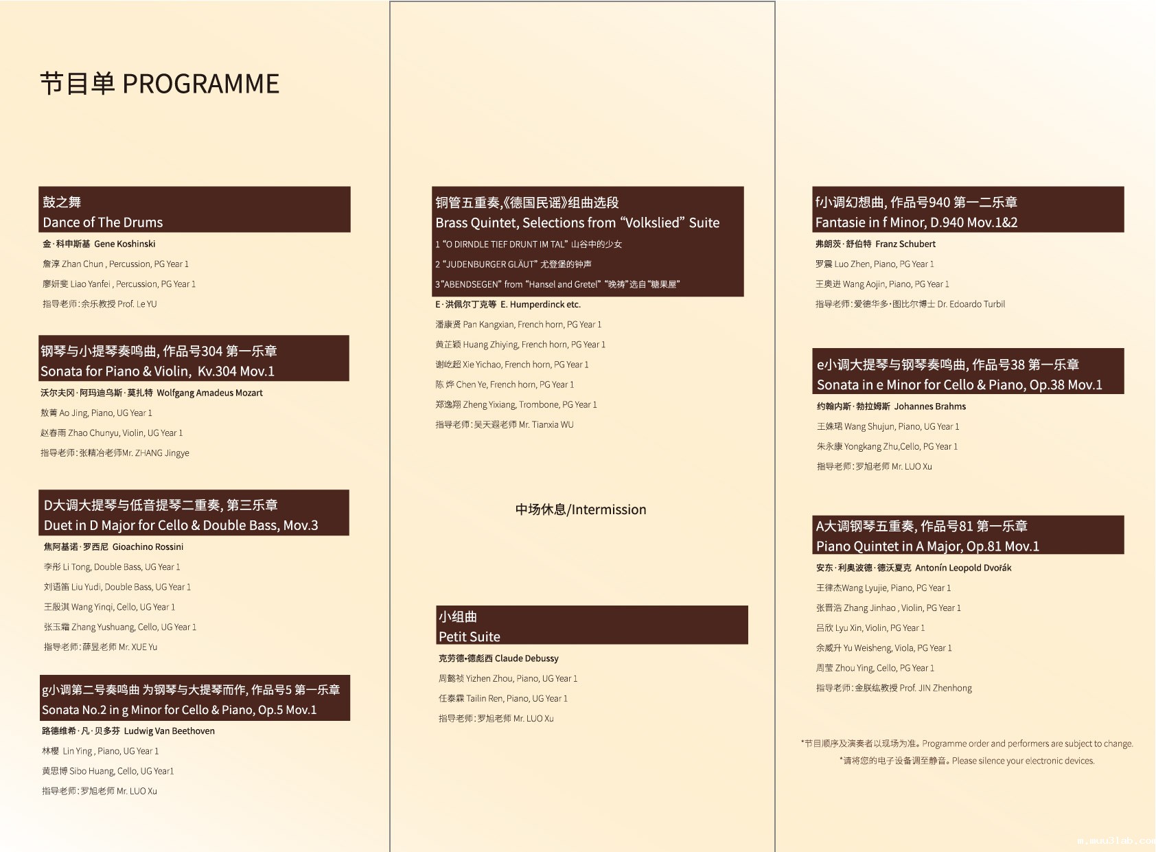 • 迟到的观众请在工作人员的指引下场外等待,一首曲目或乐章结束后再进场入座;