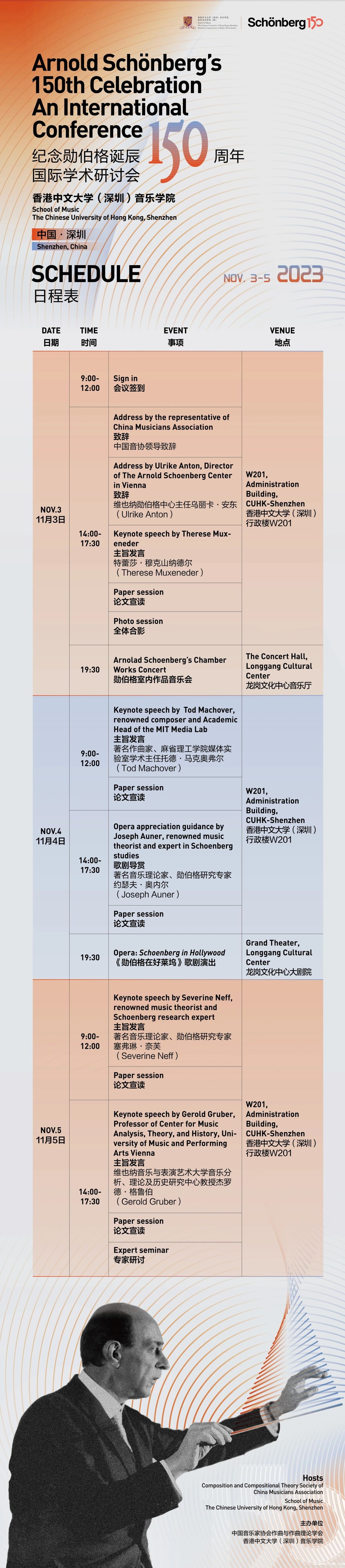 为纪念二十世纪伟大的作曲家阿诺德·勋伯格诞辰150周年,推进当代音乐创作和音乐理论研究,中国音乐家协会作曲与作曲理论学会联合betway在线登录在全球率先启动纪念和研讨活动,拟于2023年11月3日-5日共同举办“纪念勋伯格诞辰150周年国际学术研讨会”活动。