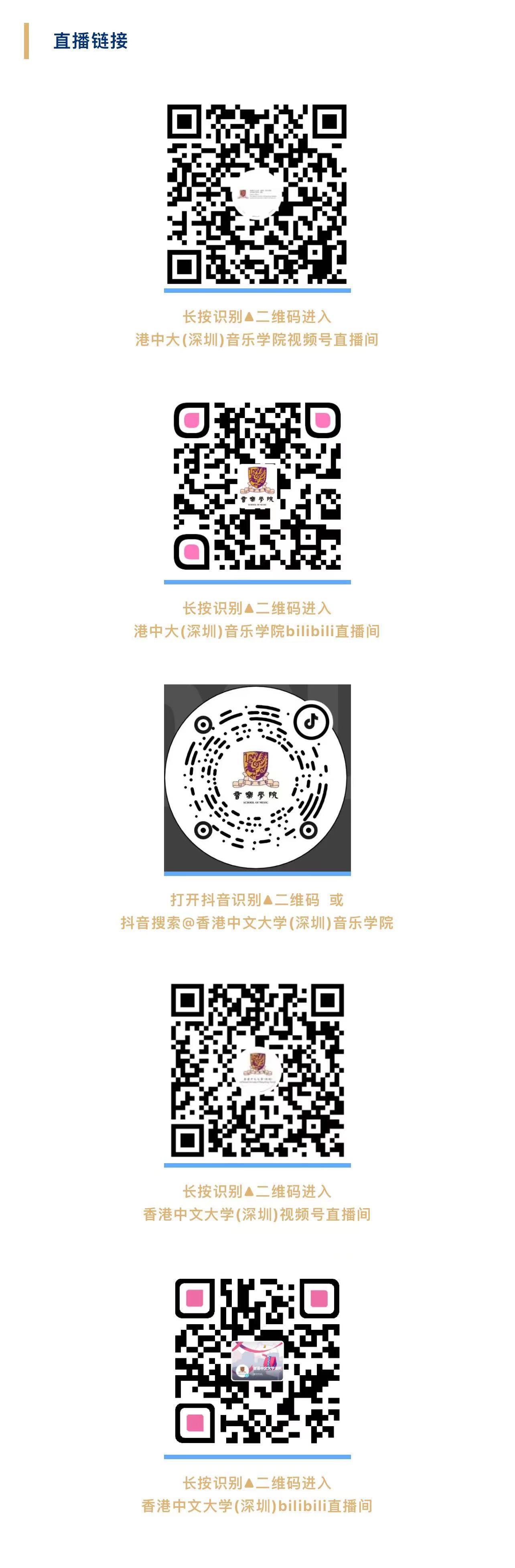 2月15日至17日20:00,我院将于香港中文大学(深圳)以及必威首页登录平台官方直播平台精彩再现《和谐之乐——betway在线登录室内乐音乐会》《betway在线登录【深圳必威首页登录平台(筹)】两周年庆音乐会暨庆祝香港中文大学建校60周年、香港中文大学(深圳)建校10周年音乐会》《“炫·彩”——民族室内乐音乐会》等三场音乐会,届时欢迎大家线上观看。