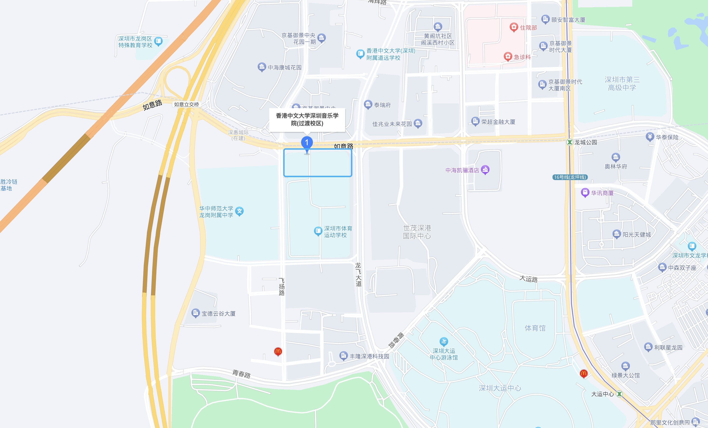 大运地铁站:可乘坐M317路、M593路从大运地铁接驳3站往坪山综合交通枢纽公交场站方向至中海康城国际南站