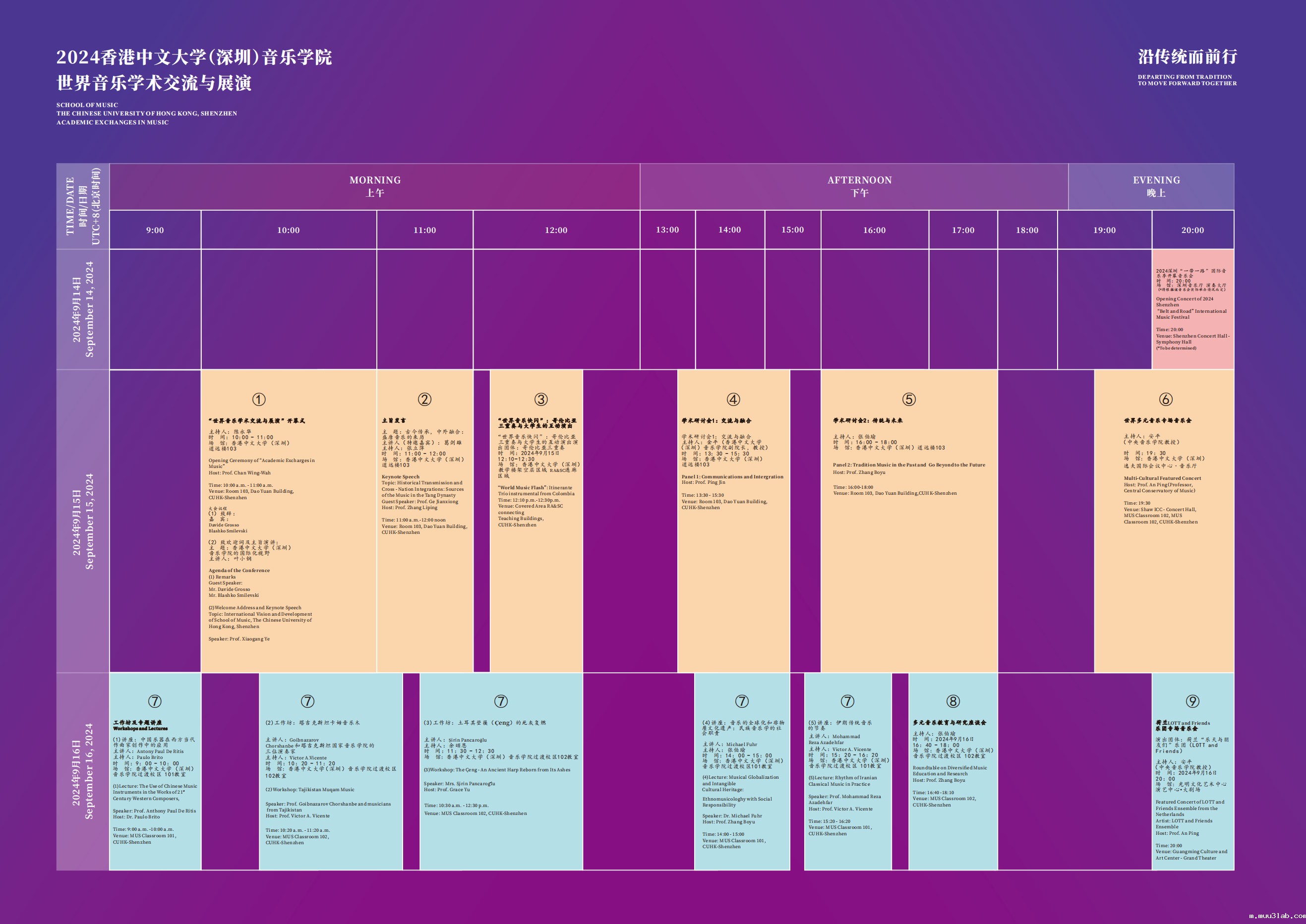大会邀请了来自世界19个国家和两大国际音乐组织的学者、音乐家等杰出代表前来参加,主题为“沿传统而前行”,设开幕式、主旨演讲、学术研讨、讲座及工作坊,以及两场多元文化音乐会。著名作曲家叶小钢教授和著名学者葛剑雄教授将为大会做主旨演讲(详情见下图大会日程)。
